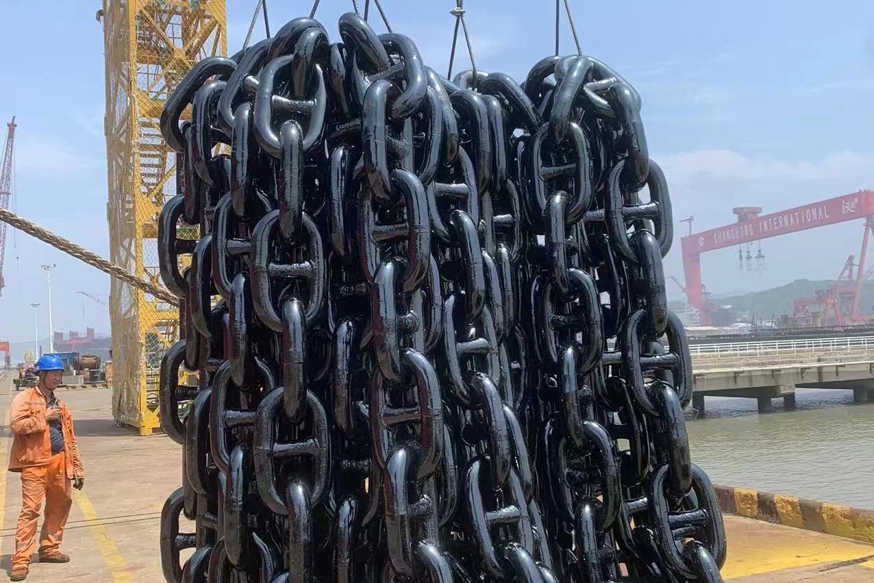 Studlink: équipement standard pour les grands navires (navires marchands, navires océaniques, navires de guerre). Avantages de base: haute résistance, fiabilité et résistance aux conditions de la mer dures, offrant une garantie de sécurité.